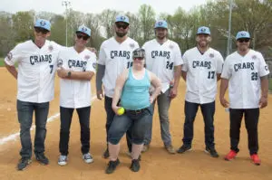 April 12, 2017 — The Arc Southern Maryland looks forward to the Southern Maryland Blue Crabs’ visit every year. This year marks the Blue Crabs’ 10thAnnual Community Caravan, when players take time away from their practice schedules to visit with fans and organizations throughout Southern Maryland, finding various ways to give back to their community. For six years, the Blue Crabs have joined The Arc Southern Maryland at the park to play a game of pick-up baseball which is inclusive and fun for people of all abilities.