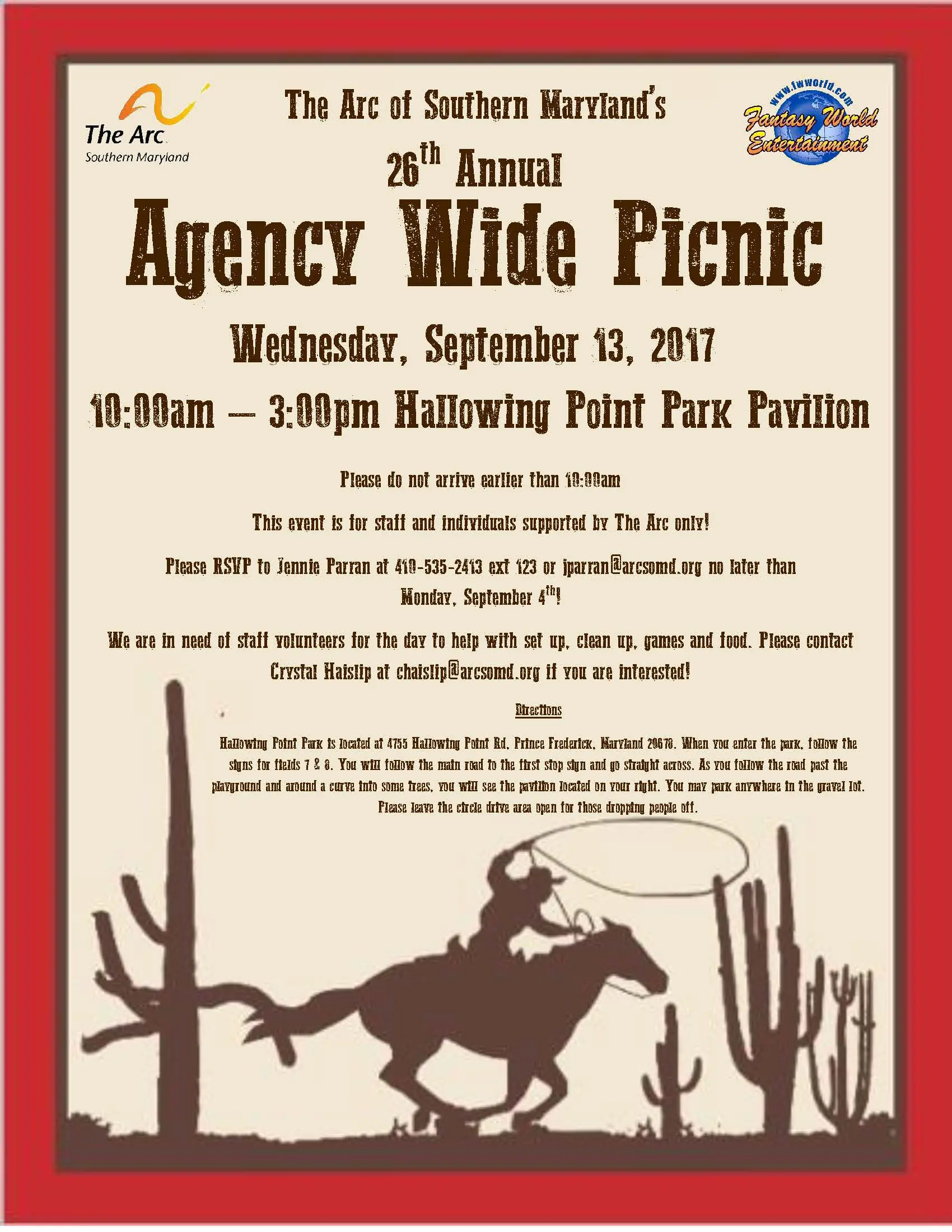 Hallowing Point Park Prince Frederick, MarylandSave the date! More info to be announced. *This event is for staff and people supported by The Arc only.